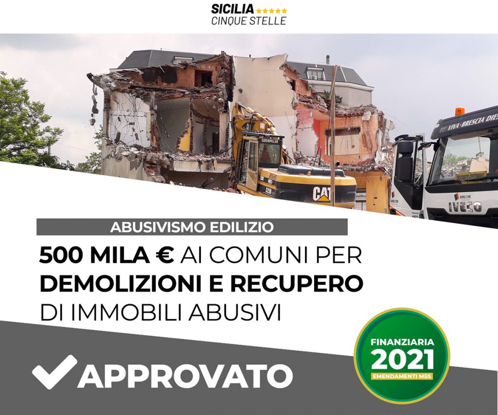 Abusivismo. Ok a norma M5S che istituisce fondo utile ai Comuni per le demolizioni