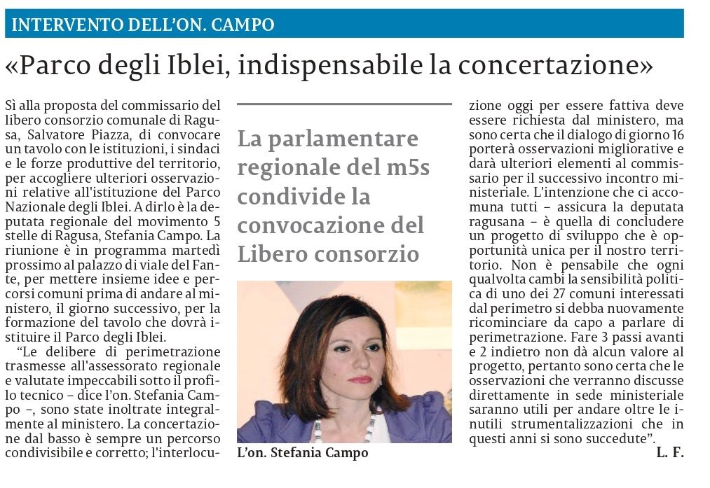 Il nostro intervento sul Parco degli iblei – La Sicilia –