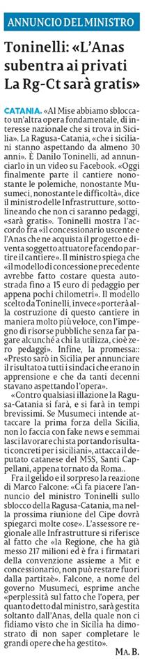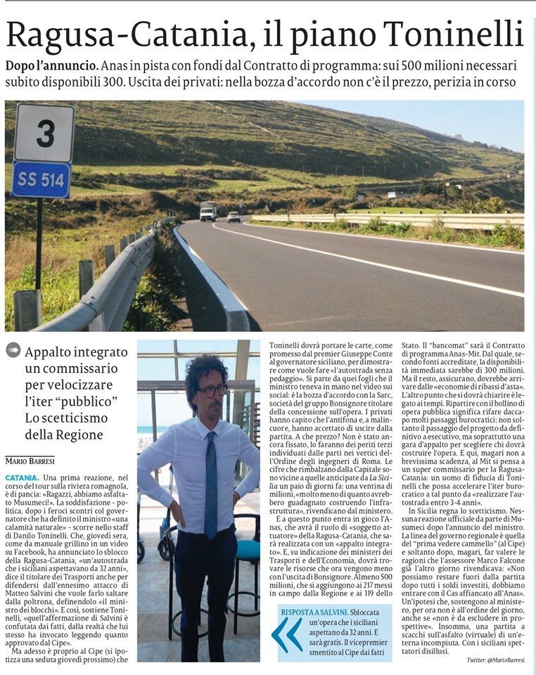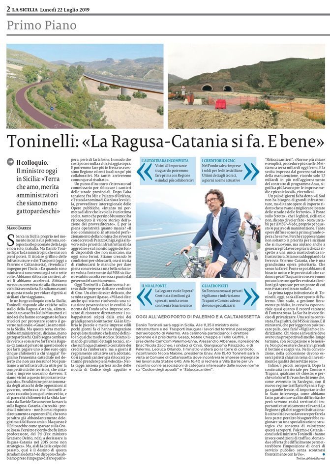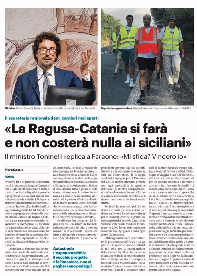 Il ministro Toninelli sulla Ragusa-Catania – La Sicilia –