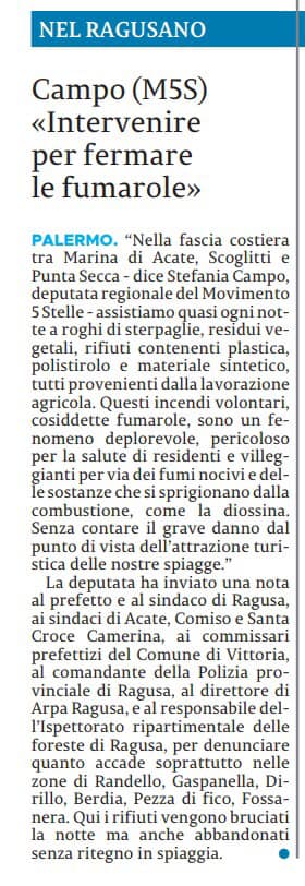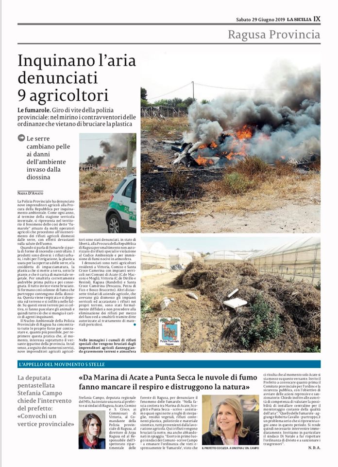 La questione “fumarole”. Articolo sulle denunce effettuate dalla Polizia Provinciale di Ragusa e articolo, in fondo, sulla mia nota al Prefetto per la convocazione del Comitato per l’ordine e la sicurezza pubblica. La questione “fumarole” su La Sicilia di oggi. Articolo sulle denunce effettuate dalla Polizia Provinciale di Ragusa e articolo, in fondo, sulla mia nota al Prefetto per la convocazione del Comitato per l’ordine e la sicurezza pubblica. – La Sicilia ⬇️