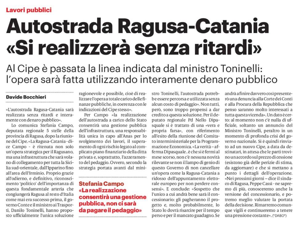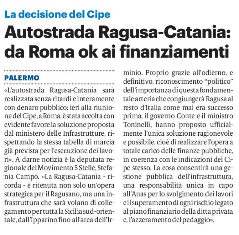Ancora articoli sulla Ragusa-Catania – La Repubblica Palermo