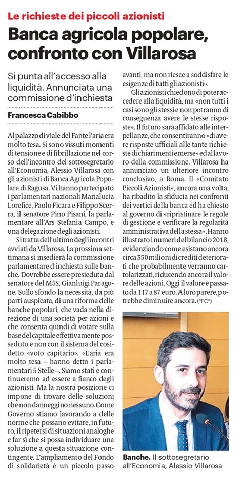 Il nostro incontro con il sottosegretario Alessio Villarosa sulla questione Bapr – La Sicilia