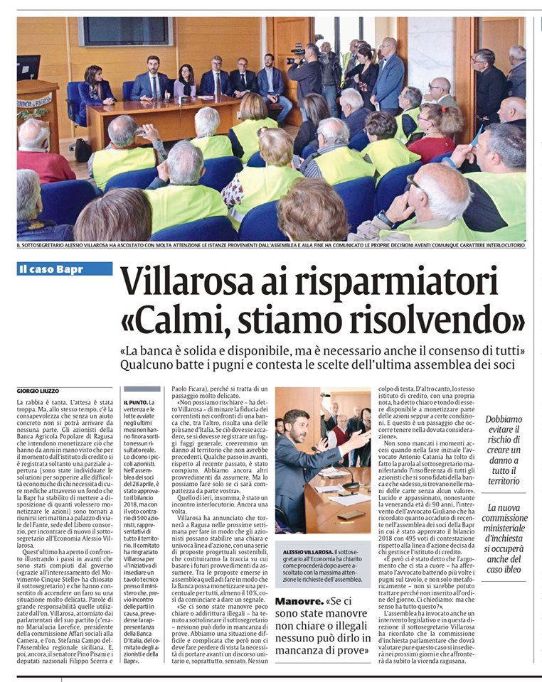 Il nostro incontro con il sottosegretario Alessio Villarosa sulla questione Bapr – Giornale di Sicilia