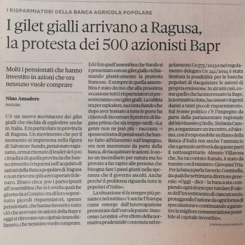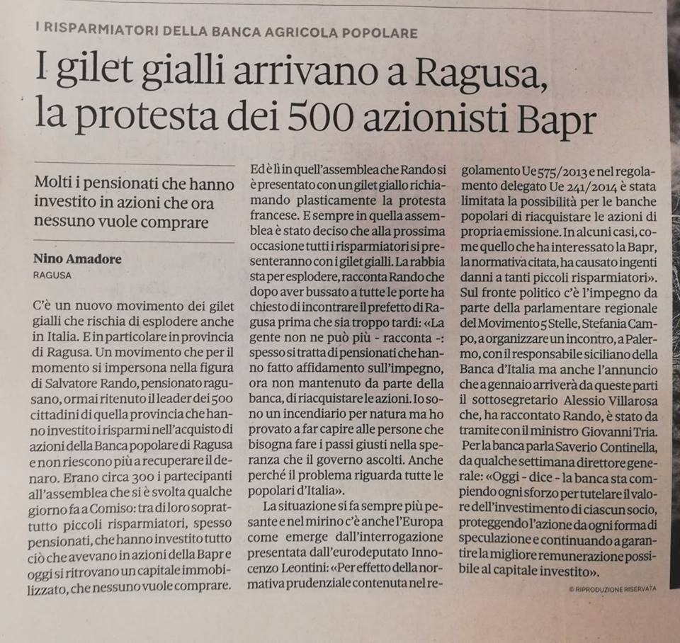 La problematica che sta interessando migliaia di risparmiatori della Banca Agricola Popolare di Ragusa all’attenzione del Mef – La Sicilia