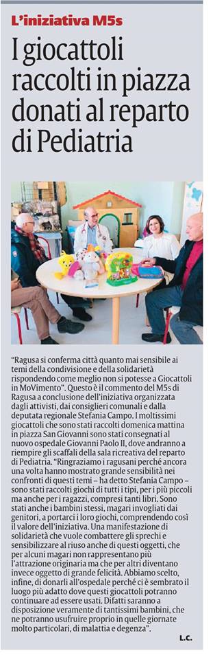 “Giocattoli in Movimento” donatio al reparto di pediatria di Ragusa – La Sicilia