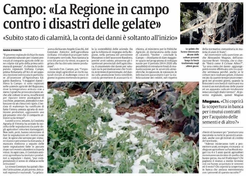 La nostra richiesta sullo stato di calamità dopo le gelate dei giorni scorsi. -La Sicilia