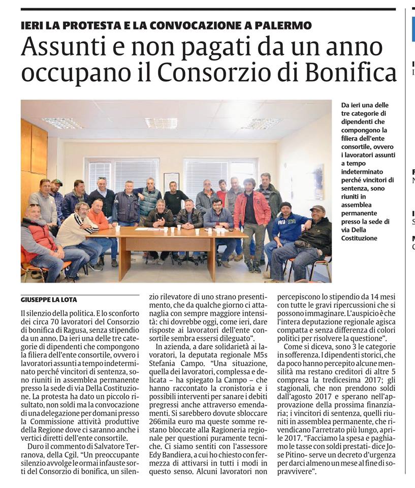 Il nostro impegno e la nostra solidarietà ai lavoratori del consorzio di bonifica – La Sicilia