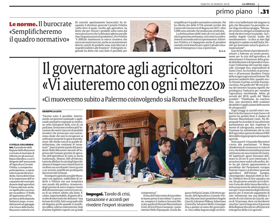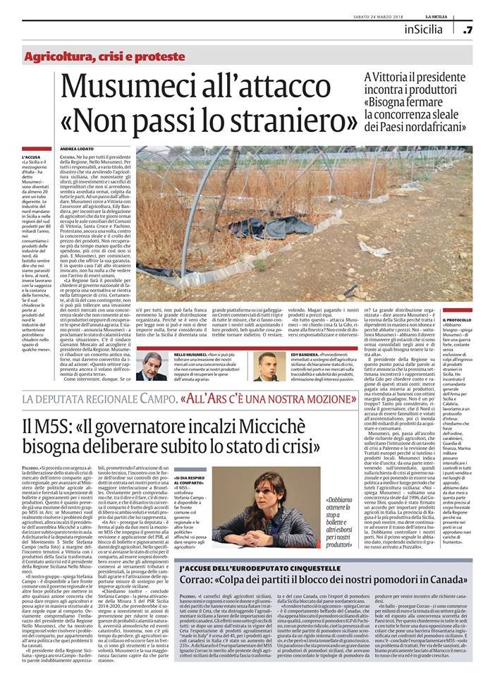 In prima linea insieme ai produttori per dare impulso positivo all’agricoltura – La Sicilia