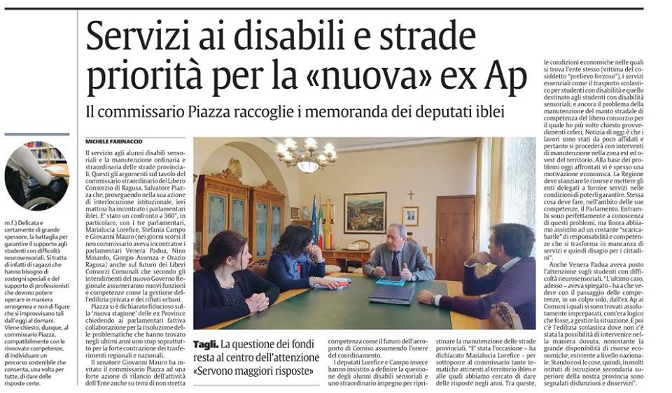 Incontro con il Commissario Straordinario Piazza – La Sicilia