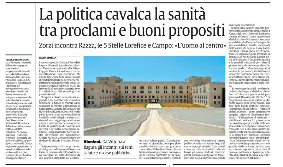 Il nostro incontro di domenica sulla sanità’: “L’uomo al centro” – La Sicilia