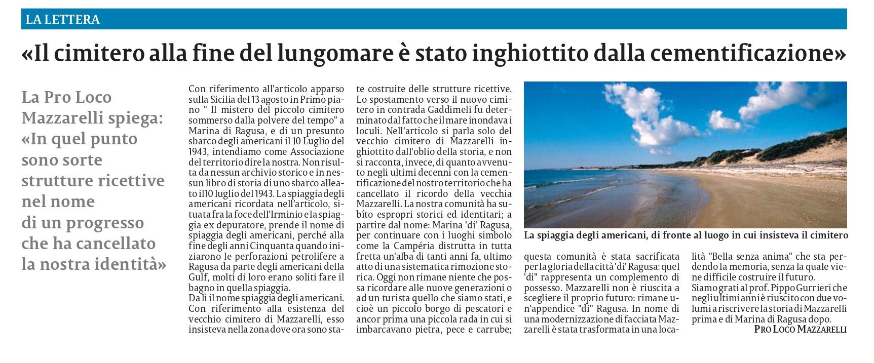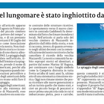Prendiamo atto e ci fanno molto piacere le precisazioni della Pro Loco Mazzarelli sull’antico cimitero di Marina di Ragusa pubblicate su La Sicilia. Per quanto mi riguarda continuerò a fare luce su questa vicenda