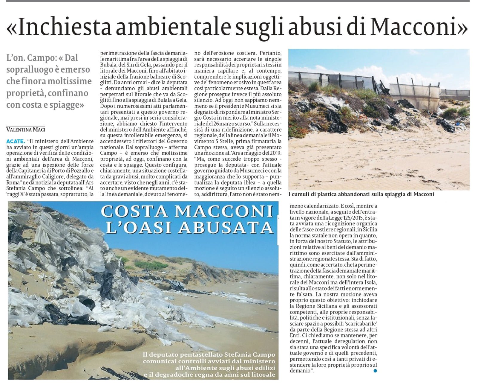La nostra inchiesta portata avanti sul litorale che va da Bulala a Scoglitti e l’intervento del Ministero all’Ambiente e della capitaneria di Porto di Pozzallo su “La Sicilia”
