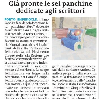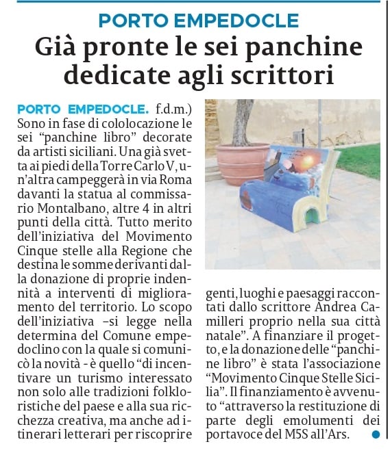 Sono già pronte, a Porto Empedocle, le panchine letterarie, dedicate agli scrittori, grazie ai fondi dell’associazione Movimento 5 stelle Sicilia. La Sicilia edizione Agrigento