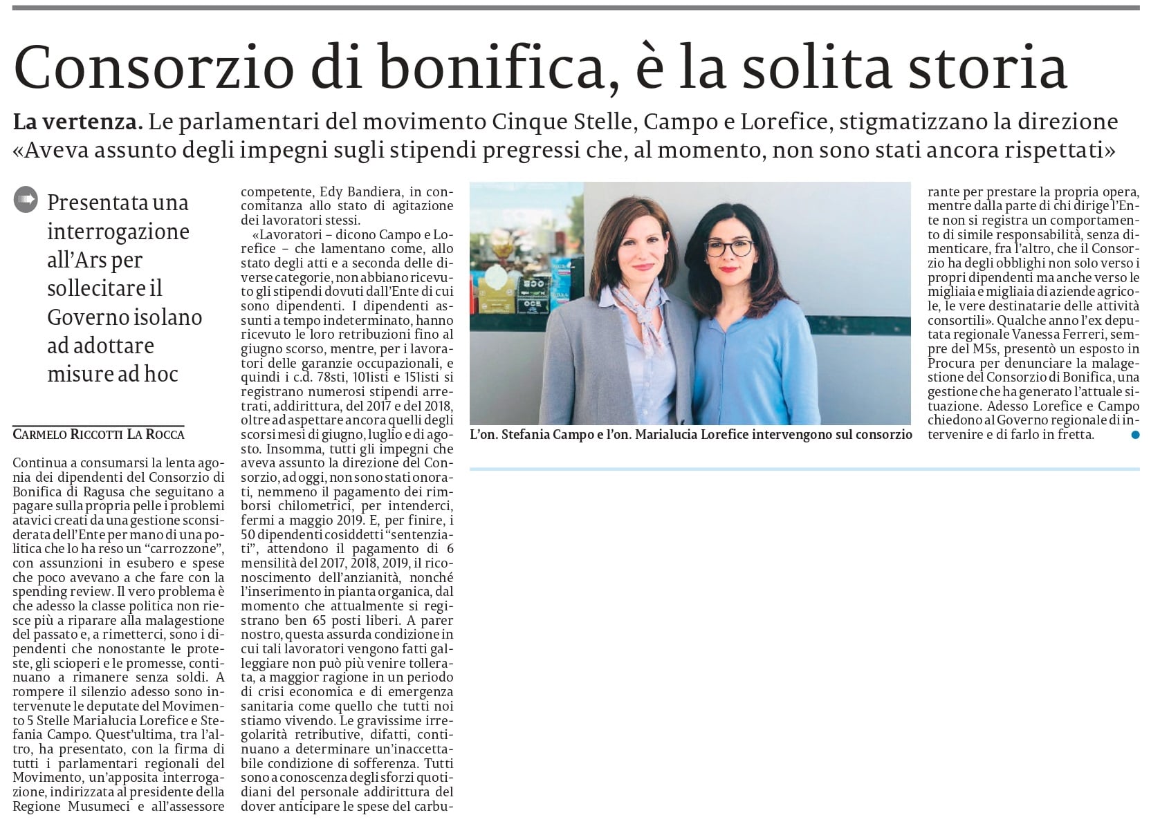 Il nostro (purtroppo ennesimo) intervento sul Consorzio di Bonifica di Ragusa, La Sicilia