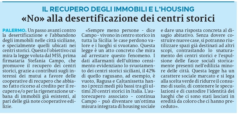 Approvata la nostra legge contro la desertificazione dei centri storici! Sulle pagine regionali de La Sicilia